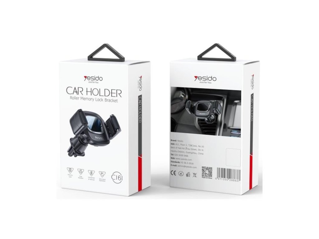 Univerzální držák do auta YESIDO C161 je navržen pro bezpečné a pohodlné používání mobilního telefonu během jízdy. Díky montáži do ventilační mřížky umožňuje mít telefon neustále v dosahu a v optimálním zorném poli řidiče, což usnadňuje používání navigace i handsfree funkcí.