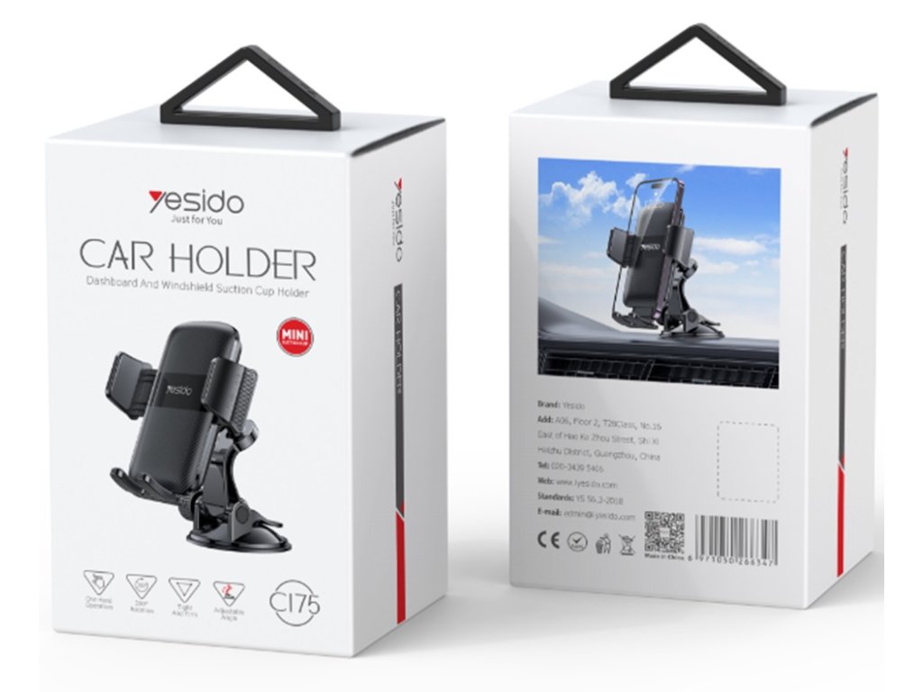 Yesido C175 mechanický držák mobilu do auta / s přísavkou / nastavitelný - černý.