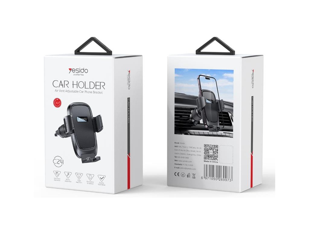 Yesido C241 mechanický držák mobilu do auta / do mřížky ventilátoru / nastavitelný - černý.