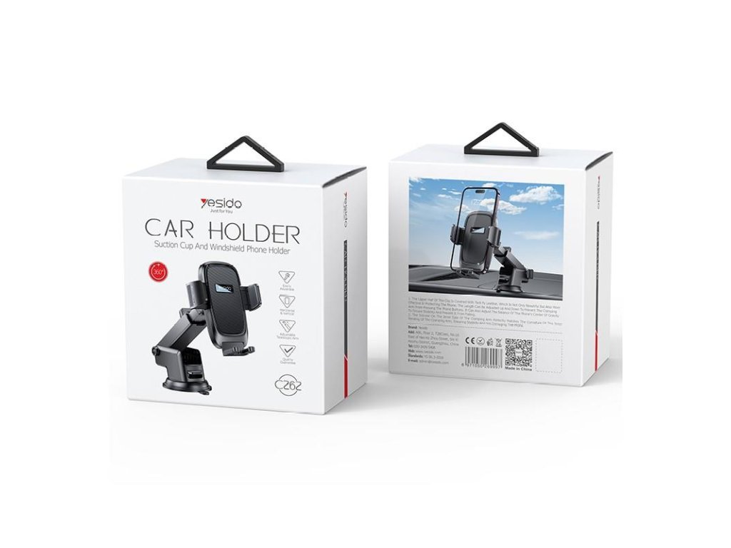 Yesido C262 mechanický držák mobilu do auta / s přísavkou / nastavitelný - černý.