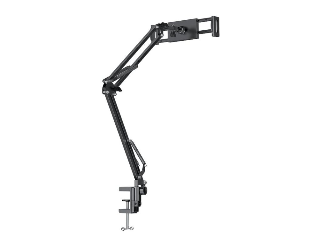 Maximální výška 64 cm poskytuje široké možnosti nastavení a zvyšuje komfort při dlouhodobém používání. Univerzální držák je kompatibilní se zařízeními o velikosti od 4 do 12,9 palce, takže je vhodný pro většinu chytrých telefonů i tabletů.