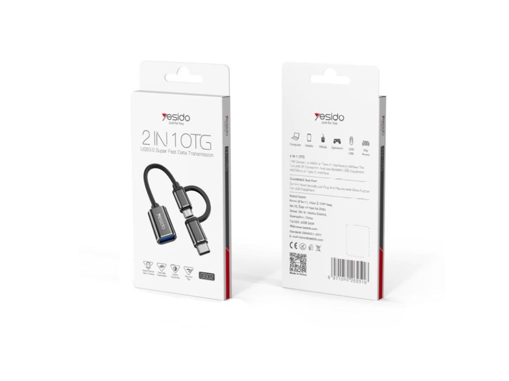 Adaptér OTG YESIDO GS02 2v1 je praktické řešení pro připojení zařízení s USB-A konektorem k moderním telefonům, tabletům nebo notebookům vybaveným portem USB-C nebo Micro USB. Díky kombinaci dvou konektorů v jednom adaptéru nabízí univerzální využití a umožňuje pohodlné propojení s širokou škálou zařízení bez nutnosti používat více různých redukcí.