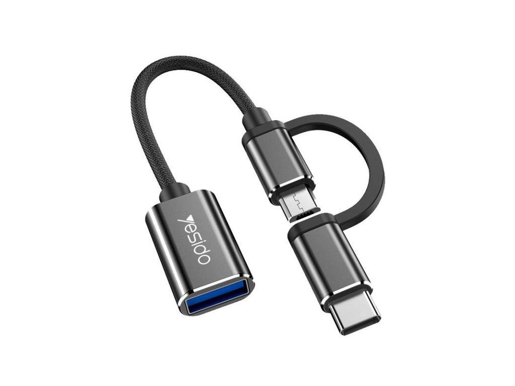 Yesido GS02 adaptér 2v1 / Micro USB + USB-C (M) / USB-A (F) / OTG / 10cm